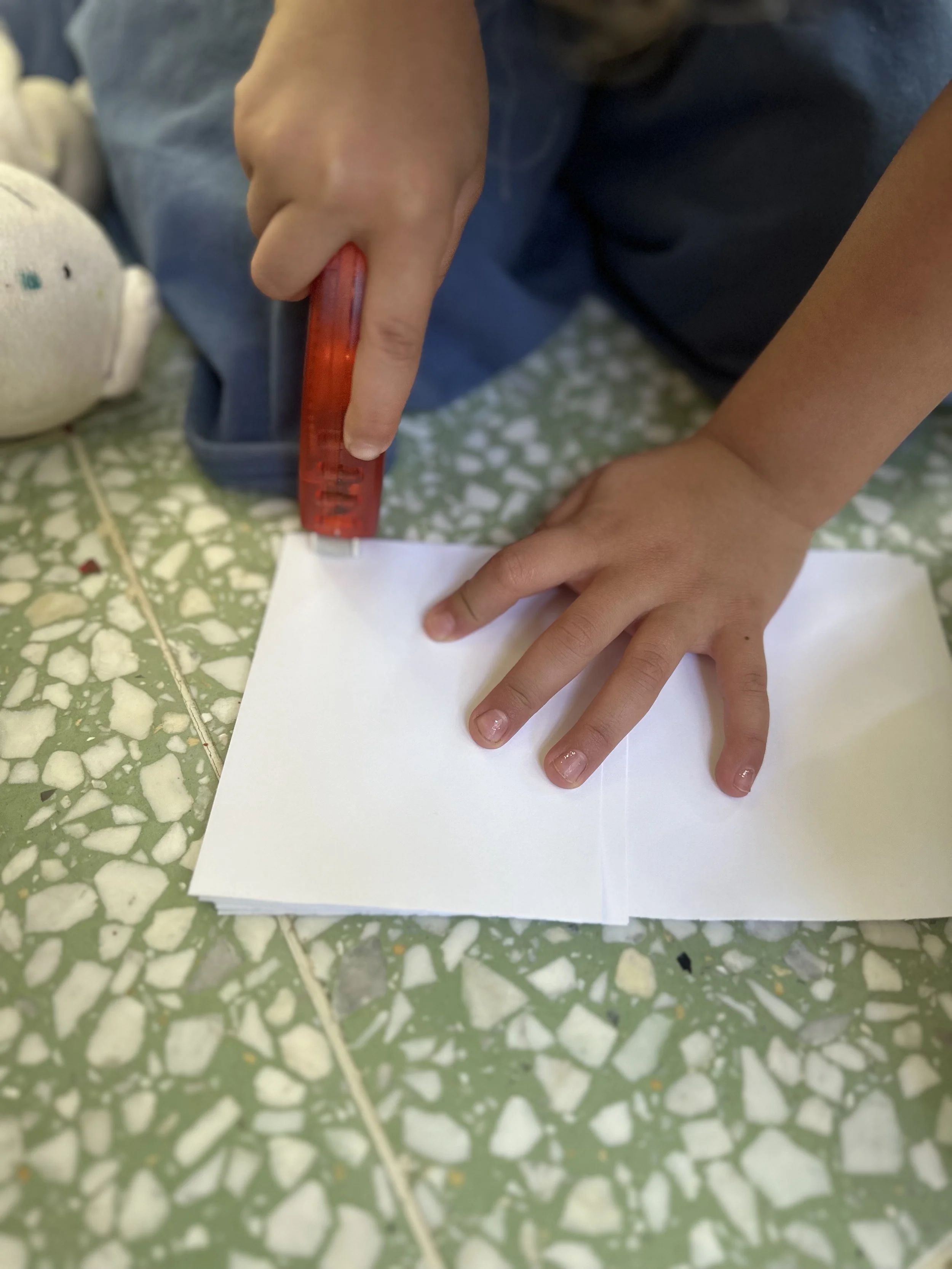 Cut paper into equal width strips. Our example used strips of 8×11 cut in half, measuring 4”x11”.